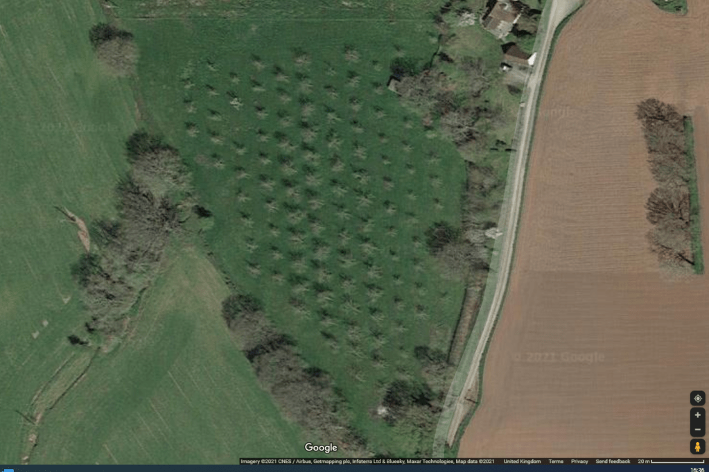 It’s easy to just dismiss all this as wishy-washy sentiment. Not least because James has an obvious commercial interest in attesting his orchard to be of good quality. But I’ve never made drinks; never had a stake in a particular vineyard or orchard being good or not, and I know what he means. There is a sense that you get from certain patches of land; a visual demonstration of its physical attributes, in the case of the hill of Hermitage or the gravels of Pauillac, and an admittedly-less-defensible feeling that only comes from having walked through enough orchards and vineyards and tasted enough of their output. That energy. That sense. It is striking, looking at the Home Orchard, below, how closely it matches Gammyoulands in the alignment of its rows and the direction and steepness of its slope. (Gammyoulands is probably a little steeper, off the top of my head). It’s a very different orchard; smaller, wider-spaced, younger trees and, I dare say, different soil, but there are similarities nonetheless and those similarities are worth our care and thought. Orchards are worth our care and thought.