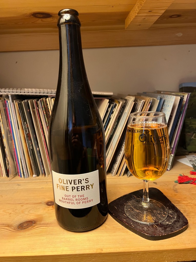 In the mouth: What an initial impression! Oily, viscous, sensuous perry, that coats the inside of your mouth in a very accessible, sweet brushstroke. Mild tannin underneath that sweetness, to give some body, but the Rum cask has given of itself strongly to this Perry. One of the sweetest Oliver’s Perries (or ciders) I have ever tasted!