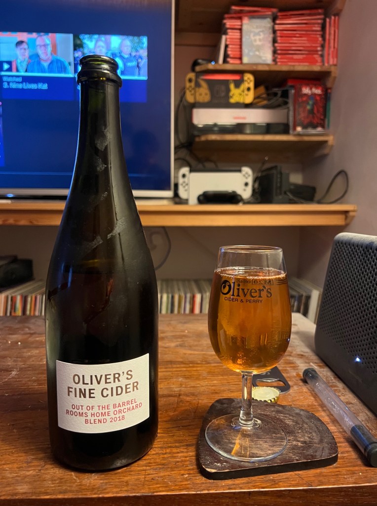 On The Nose: There’s that welcoming, familiar, Oliver’s Cider farmyard funk. Bit raisiny, light Sherry note.