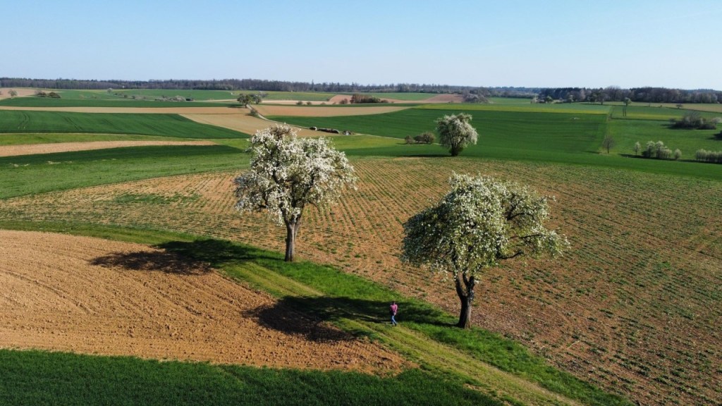The landscape where we are is characterised by low rolling hills on a limestone base. We’re just a few kilometres from the western edge of the Odenwald, where sandstone takes over. The pear trees we use are scattered over quite a wide area. Grapes used to be grown locally, and there are still limestone terraces buried in woods nearby, but phylloxera put an end to that, and they never recovered.