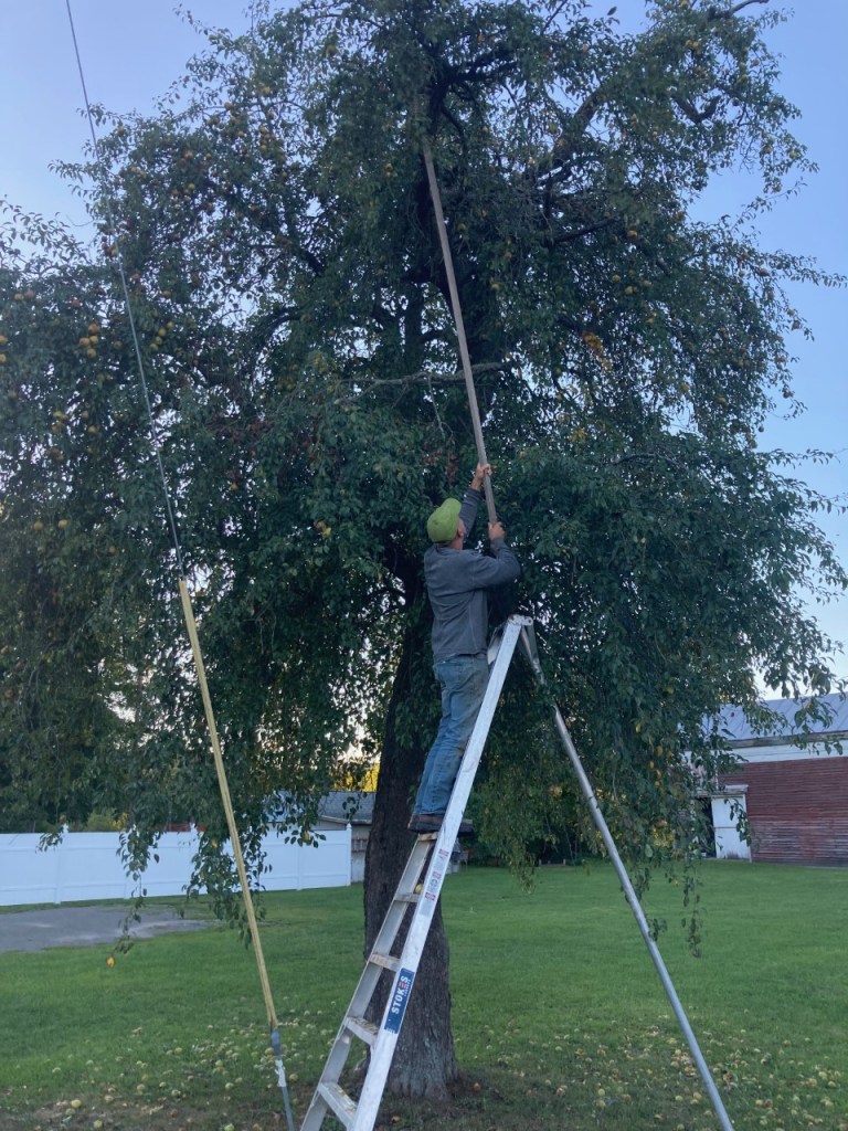 In 2015, the year of our second crop, we had a massive fireblight outbreak and sadly learned that the European pears were ridiculously susceptable to our Finger Lakes strain of fireblight. We had to cut down most of those trees. Since then, our long term project has been to find suitable perry making pears from fireblight resistant individuals in the wild. We scout, harvest, return, observe these trees and eventually collect scion and graft into the orchard. Right now, my favorites of these are the offspring of what we call Langford Copse Mother, a massive 80+ year old tannic and aromatic pear and her seedlings that surround her.