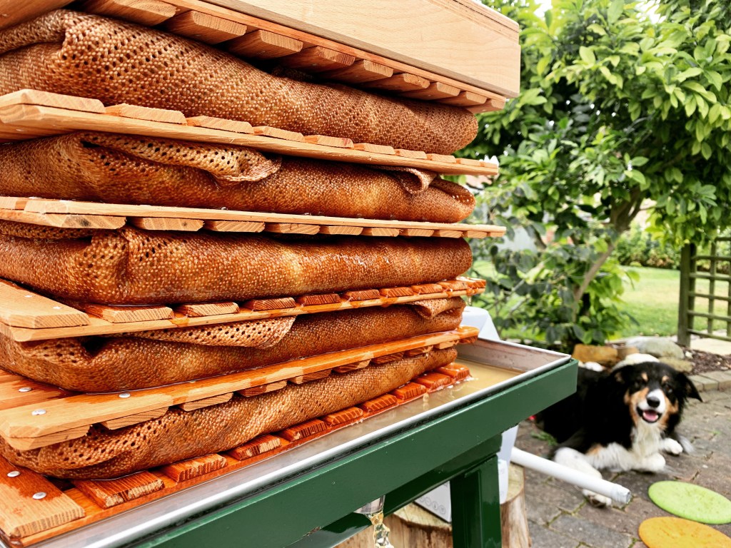 Cider is the early start and the constant cleaning, as well as the bending, lifting, twisting, pushing and pulling. It is the continuous hum of the machinery and the buzzing of pointy visitors. It is the first taste of sweet freshly pressed juice and it is watching solid structures compress and burst; weeping their sugar-filled, viscous tears that stream down the wooden and steel faces. Cider is the never ending movements and measurements, the sore joints that remind you what has been and what is yet to come, the patches of spilled juice and the graveyard of broken hydrometers. It is the fear and doubt that creep in whilst waiting for fermentation as well as the overwhelming elation felt when the juice starts to bubble. It is the multitude of questions that flood your mind when you taste each batch. Cider is the need for patience and determination as air locks get quieter and quieter, it is the experience that comes from many batches and many years. Cider is the joy at tasting something pure and unique, but it is also the soul destroying sorrow when things go wrong.