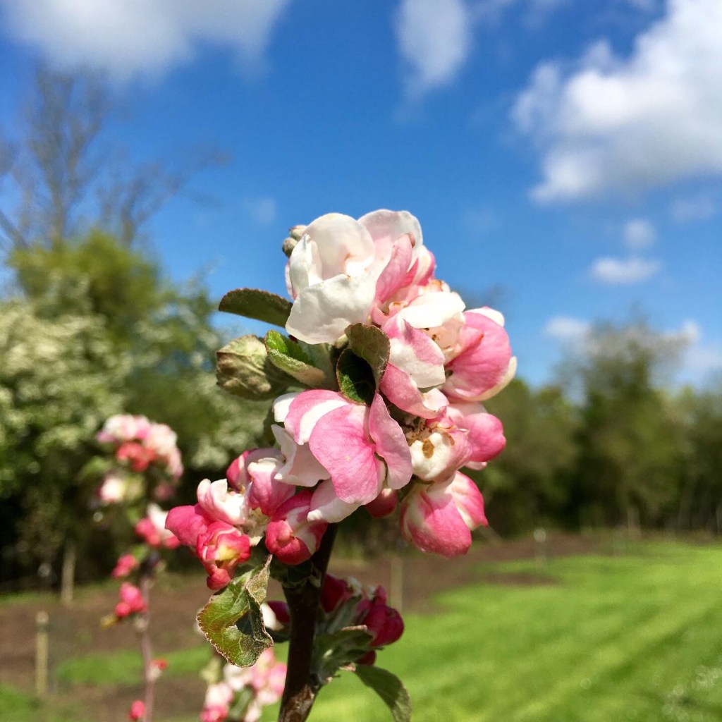 Cider is the roots, the thin thread-like tendrils reaching out through the soil, grasping for nutrients and life. It is also the muddy, calloused hands that dig the holes and protect the young trees. It is the warming sun as its light flashes across the skeletons of trees standing cold and still. Cider is the tiny bulging buds that force their way out through the bark, woken after weeks of freezing harshness. It is the unfurling of pastille shaded blossom, that flutter and wave in the breeze calling to the pollinators to visit and complete their life-preserving tasks.
