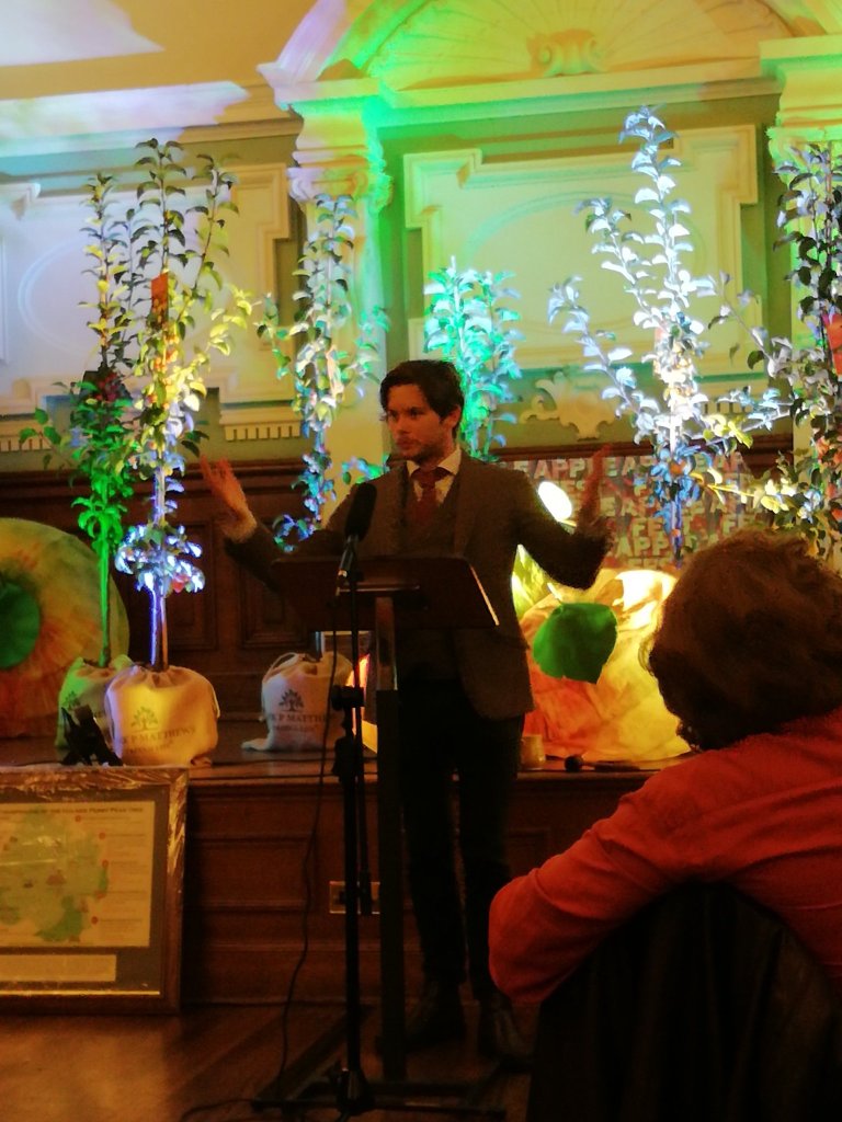 On Saturday 14th October I had the privilege of being invited to give one of the keynote speeches at Hereford’s City Hall for the AppleFest Grand Banquet. Being more a writer than a speaker – my only previous speeches were as a groom and as a best man, where you’re generally guaranteed a certain measure of goodwill – I’d been very nervous beforehand. Thank goodness there was a lectern to cling to – I reckon you could hear it shaking. But it was a fantastic event and a very friendly crowd and I made it through more or less unscathed.