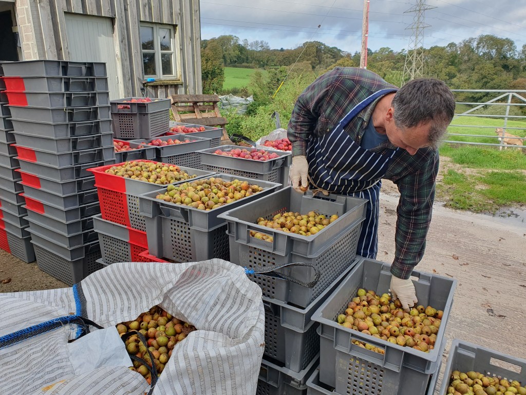 As far as favourites, Yarlington Mill has become my favourite. If it’s picked at the right time, it’s nice to press; it always seems to ferment well and make a nice cider. For the future, on our farm we’ve planted quite a lot of varieties, and I’ve got lots more to plant still as I’m constantly grafting new varieties that I’m interested in. We’ve put a lot of Dorset varieties in. There’s a great book by Liz Copas and Nick Poole, The Lost Orchards, recently published, rediscovering old Dorset varieties, and we’ve put a number of trees in that feature in that book: Golden Ball, Tom Legg, Matravers. All ones that should produce a traditional Dorset cider. Have also put in some red-fleshed varieties – hoping to experiment producing some rose cider. Because of my name, we’ve also put in an American variety called Harrison – looking forward to seeing what sort of cider that produces in this country. We’ve also got a reasonable block of perry pears in our orchard. We’ve started picking them in 2022. So, we’re looking forward to seeing what we can do with that in the future.