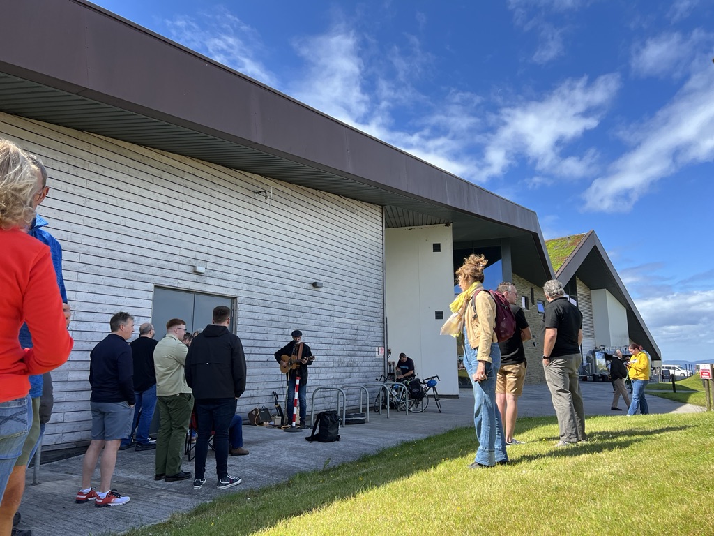 I was wearing the effects of the previous night’s revelries all too plainly on my face. I always try not to mix my drinks at the distillery’s White Stag Dinner, the formal dining affair which opens each year’s festival. I think on this occasion, with some certainty, I had failed at this endeavour. Tea was an absolute must-have! A small queue had already started forming towards the front left-hand of the distillery building, affectionately known as the Cider Shack by its staff. This bit of Lagg Distillery will, if all goes to plan in the coming years, have far more of an apple-themed operational existence, but for now, is the mailroom for both Lagg and Lochranza distilleries. With FOMO kicking in, quite unnecessarily, I wandered over to join the queue. Just under an hour passed and the doors to the Cider Shack swung open – the festival’s annual single cask bottling was on sale, along with its companion Harmony bottling (inside a dinky little guitar case). As well as whisky at the festival, there was another bottling on-sale at the distillery that I saw nearly everybody adding to their purchases: Lagg Distillery Orchard’s inaugural small batch craft cider!