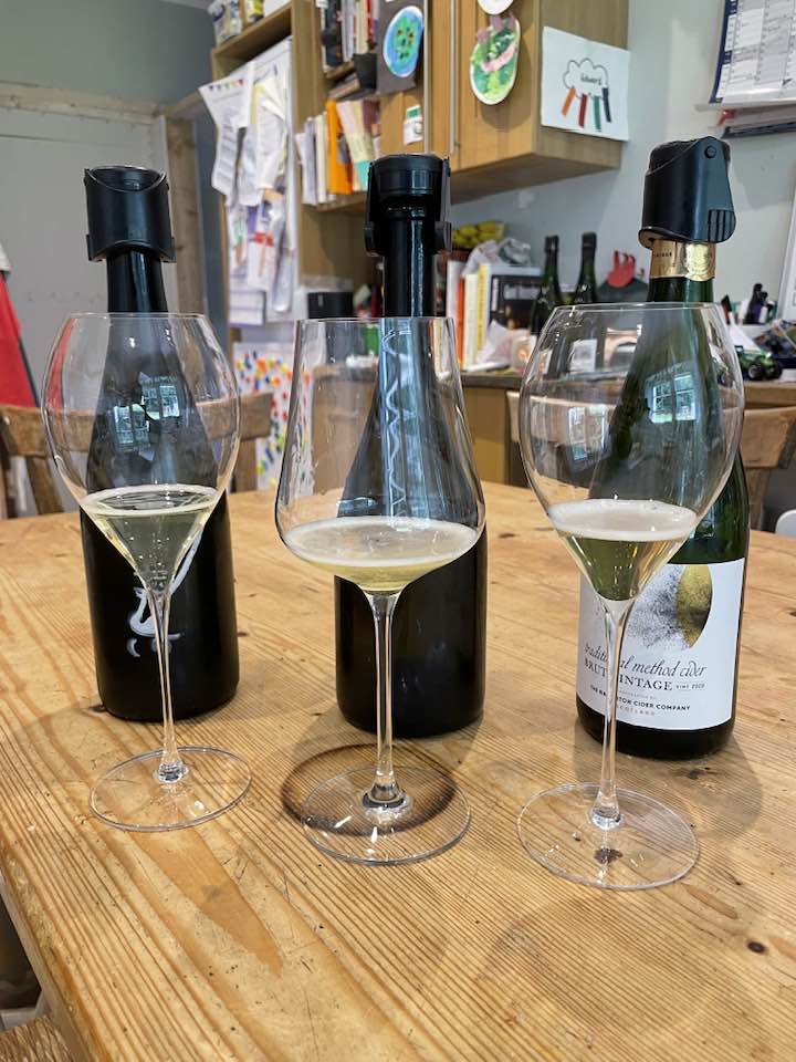 This involves bottling the reserve wines in magnums at a (relatively) low pressure of two bar. (For reference, full traditional method is around six bar – the same pressure as a fully-inflated HGV tyre). The slight degree of secondary fermentation forms a protective blanket of carbon dioxide, as well as as throwing a sediment of lees that add further antioxidative weight. The magnums wait for as long as the cidermaker wishes, before they are brought together in tank, then bottled as a cuvée at the usual six bar pressure. It takes a lot of space, a lot of time and a lot of skill, and yes, I’ve had to have that all explained to me several times, and no I’m still not certain I’ve fully understood it. But that’s the sort of territory we’re entering here.