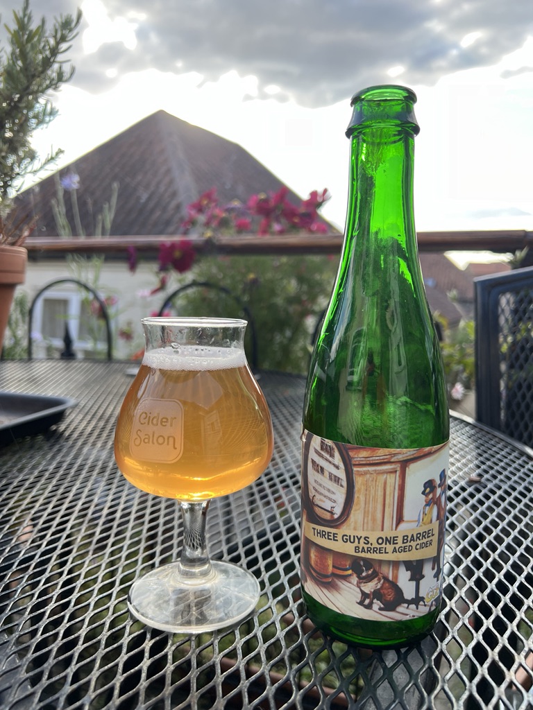 I first met Mauro on a sponsored bike ride through Belgium and Holland, over to Northern England and up to Scotland and the Isle of Arran a few years ago. Back then he was not brewing or fermenting anything (to the best of my knowledge!), but with a father who runs an excellent beer and spirits shop (Prik & Tik in Zammel), and a grandfather who brews a delicious serious of Belgian beers, Ne Flierefluiter, it was only a matter of time before Mauro stepped up to some form of interaction with the drinks industry in Belgium. I did not necessarily expect him to produce quite the range of co-ferments and differing styles of beers and ciders so early into his drinks-making career. It’s very much appreciated however! I’m happy (nervously cautious) myself working with orchard blends and different single variety ciders and perries for the first few years of my side project, Toye’s Cider. Mauro is steaming ahead with an almost alchemical desire to see what fruit works with what hop, and how a barrel can influence the overall flavour of the drink. It’s inspiring to see, so it’s only right and proper that GCB gets covered here on Cider Review – particularly after his bottle Three Guys, One Barrel, made it to the list of my Top Ciders & Perries of 2023.