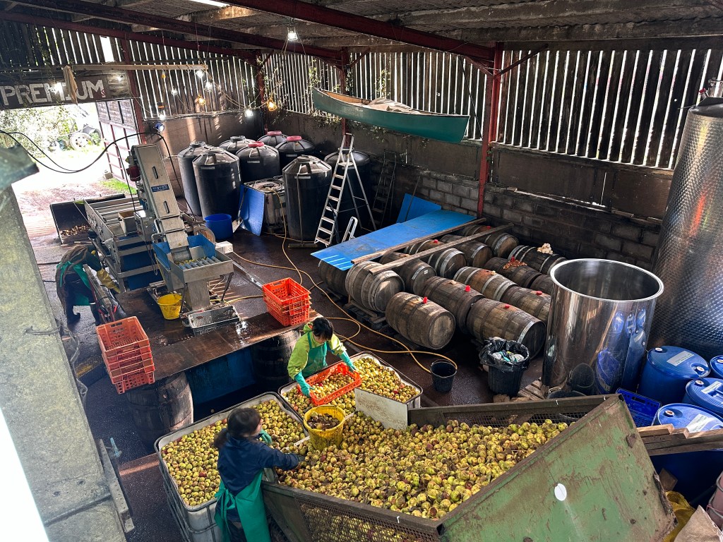 Finally, to Ross-on-Wye! Rather paradoxically, this ever-evolving place embodies tradition to me. Albert & co may make cider in quite a different way to how they used to, and the family business may have shifted and changed over the years, but it’s still a working farm, a truly agricultural place — a place where harvest is, as Albert confirmed to me, ‘the most important time of the year’. There’s nothing like scrabbling around on the ground for days to gather sacks of soggy apples, lifting crates of said apples along a distinctly grown man-sized assembly line until your arms ache, and experiencing life as part of a family compound to take you back to the olden times. What’s more, cider maker John’s reply to more than one of my ‘Why do you do it like this?’ questions was, ‘because that’s what Jean Nowell taught us’. At the latest when Mike proudly sat Alfie and me down to show us a YouTube documentary that highlighted the centrality of Ross to the Three Counties-based cider revival that Jean and the Big Apple were at heart of from the early ‘90s onwards, it was it clear to me that we stand on the shoulders of giants, and you can find them still at Broome Farm.