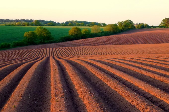 The distinctive red soils of Herefordshire at Bromsash, near Ross-on-Wye, overlying Old Red Sandstone. Elsewhere in the Three Counties, New Red Sandstone also contributes to red soils. Image by John Billinger (CC-BY-SA-2.0).