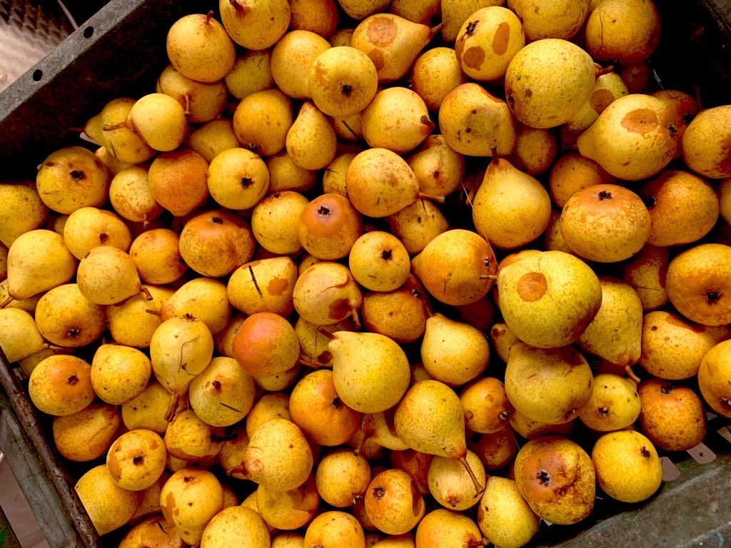 Plant de Blanc – If you love French perry — and my God I love French perry — then you love Plant de Blanc. In Domfront, the epicentre of perry in Normandy and France, perries are required to contain a minimum 40% of this pear to be entitled to the label ‘Domfront AOC’. In practice most contain far more than that, and single varieties are not uncommon. Taste one and you can see why: a swathe of pineapple, tangerine citrus, apricot and golden, honeyed pears. One of the most pristine and aromatic of all varieties, low in tannin, with just enough acidity for freshness and billowing joyful exuberance in the expression of its generous fruit. A true ace-in-the-hole pear that is arguably responsible for more of the world’s greatest perries than any other individual variety. grows some in his own Somerset orchard.